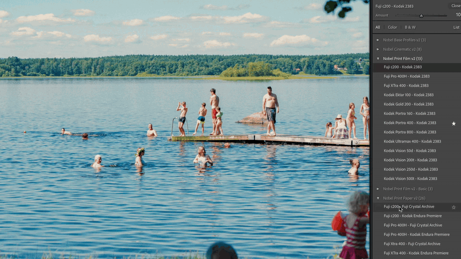 Our profile development process uses precise sensitometric data from both negatives and positives to simulate film color response. The simulation results are then transformed into Lightroom profiles for convenient and fast usage. Other film characteristics like highlight roll-off, grain, black point lift can be achieved with the included presets.